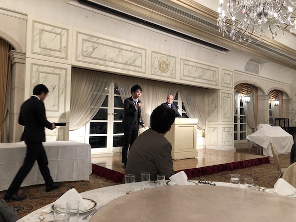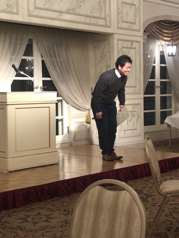 営業成績 最優秀者 阪急岡本駅前店 岩本さん スピーチ中